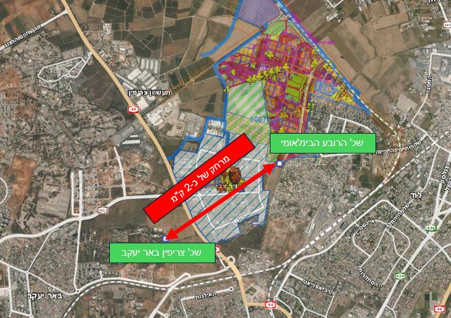 מרחק גאוגרפי מבאר יעקב - כשני ק"מ.